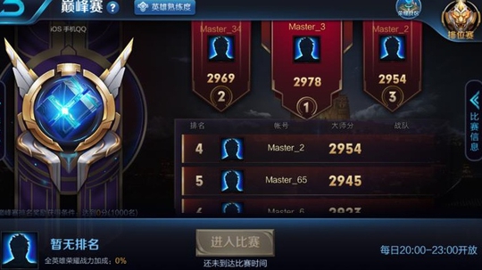 巅峰赛开启,这个模式主要的作用是刷英雄战力,要求玩家获得本赛季王者印记才能入场,可以说是比较高端的对局,开启时间为每日20:00-23:00。