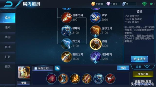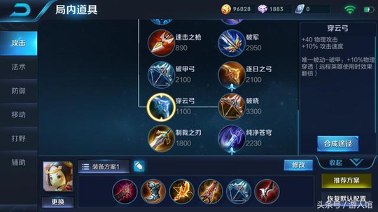 不过最让射手最高兴的,肯定还是这个新装备的加入,首先是这个新装备的一个配件,穿云弓。价钱不高但是同时具备射手们最需要的物理攻击,攻击速度,护甲穿透效果,性价比还是非常不错的。
