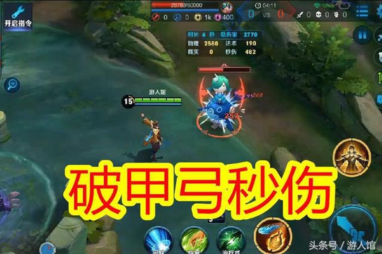 用一个只带了破甲弓的15级狄仁杰。只用普攻攻击庄周,在一段时间伤害稳定后,发现他的秒伤为480左右。然后我们把破甲弓卖掉,再换上这次的神装破晓。