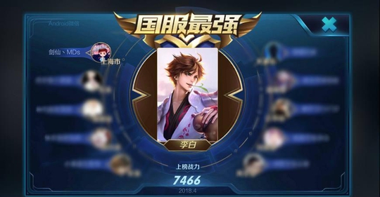 在早前,剑仙就晒出来了他的国服最强的几个称号,分别是国服最强嬴政,还有国服最强李元芳,以及一个小号的国服最强李白,可以说是相当的犀利了。