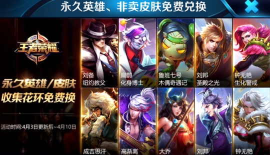 更新后的活动,持续时间八天,到十号结束,通过收集花环道具,然后进行兑换奖励,一共有五个皮肤和五个英雄,其中包括只限定活动领取的纽约教父和化身博士。