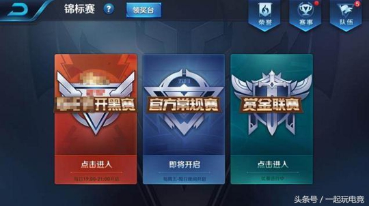 官方每周都会有各种各样的锦标赛,可以从微赛事入口进入,每个房间对于段位、比赛时间等要求不同,一个队伍只能参与一个赛事,每周五至周日晚开启。