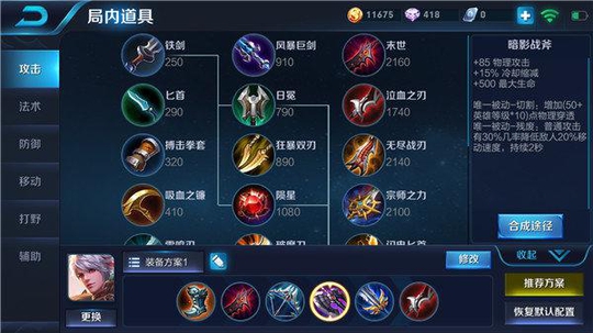 暗影战斧:满级100物穿,15%的减冷可以减少技能的cd,让百里守约更好的释放技能。