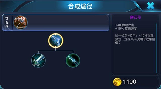 值得注意的是,价格1100的穿云弓,可以为射手提供20%的物理穿透。