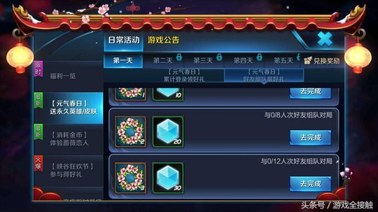 这不,我们要想换皮肤/英雄去收集花环就需要两点,第一就是天天登陆,通过不断的登陆来增加我们领取花环的个数,从而增加王者荣耀这款游戏的活跃度;第二点的套路就更老了,毕竟光你自己登陆给的花环并不够你去兑换奖励,所以就推出组队玩游戏给花环,从而把你和你的小伙伴牢牢地套在游戏里。