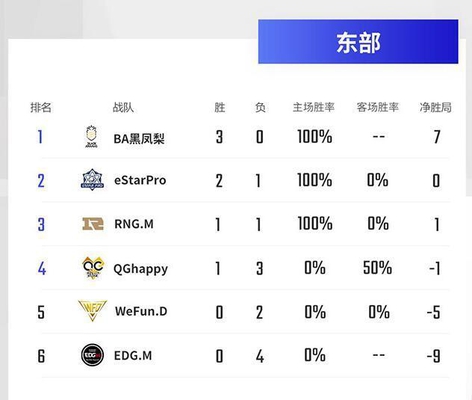 而我们开始认为很强的东部。目前也是扑朔迷离,同样是新军的BA黑凤梨,三战全胜获得第一名,ESTAR战胜了老对手QGhappy目前处于第二,至于卫冕冠军QGhappy,目前只赢了一场,真的有点让人想不到。EDGM在得到无痕之后。反而是4连败更叫人吃惊啊,不过后两场他们没有上无痕,不知道是什么原因。再来看看英雄榜。