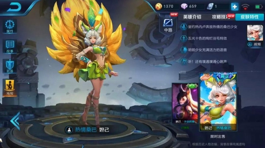 作为一个爆发型一套秒人型法师,妲己凭借了简单的操作超高的伤害征服了好多玩家。尤其是游戏中撩人的语音,更是让人对这只迷人的小狐狸欲罢不能。妲己的皮肤也非常的多,而且作为入门英雄很适合新手。狐狸的鞋子也非常好看,尤其是热情桑巴的鞋子,在皮肤浏览界面是可以发光的!