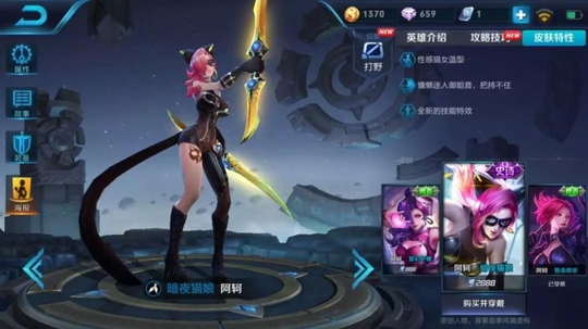 作为一个刺客型女英雄,暗夜猫娘这个皮肤像极了电影里面的女特工,美艳且一击致命。黑色的长筒高跟鞋性感极了~