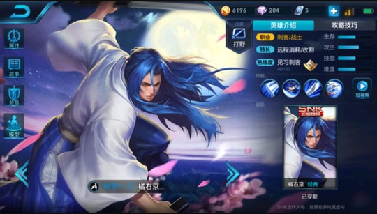 橘右京也是日本人,但是SNK里的橘右京擅长用火,天美把他的技能改了,转成用剑!