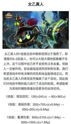第三个被削弱的是太乙真人这个英雄,太乙真人是一个辅助英雄,前中期比较强势,这一次主要也是针对这样的情况进行一个调整,希望能够为更多的辅助英雄提供出场空间。
