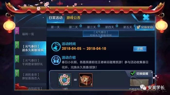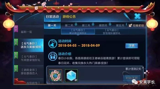 只有7个春日花环是不够兑换永久英雄、皮肤的,这个大家放心,我们在【元气春日】送永久英雄/皮肤活动中可以看到,这边也是能够获得春日花环的,不过这里的要求可能比较多,当然了也是有累积签到送春日花环的,往后几日可能是需要参与对战获取的。