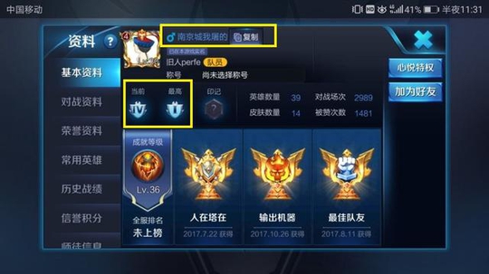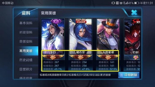 而且从这位玩家的常用英雄数据来看,他经常玩的三个英雄胜率都很低。虽然场数不是很多,不过看完这李白跟橘右京的胜率,估计没少坑人吧。不过看着这个名字,要是我是他队友,我都不想赢了。