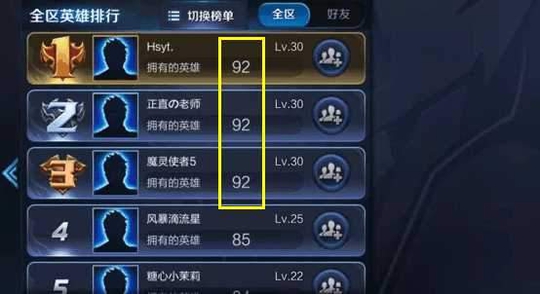 排行最高的三个玩家足足有92个英雄之多。这是一个什么概念呢?