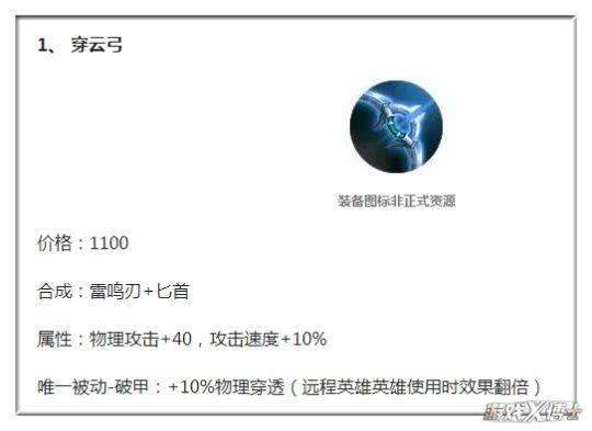 另一件新装备 “穿云弓” ,X博士就不再多介绍,因为作为合成破晓的必须装备,毋庸置疑将成为射手必出的选择。