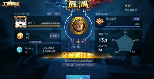 原来,这一波是一个玩家自己发掘出来了一个打野亚瑟,而且玩家还非常的艺高人胆大,直接跑到了排位赛里面去玩打野亚瑟了,看玩家的排位,也是很不错的,已经是至尊星耀了。那么接下来我们还是来看一看玩家打野亚瑟的一个战绩吧,玩家成功的拿到了MVP还有金牌打野,真的是有点犀利得过分了。