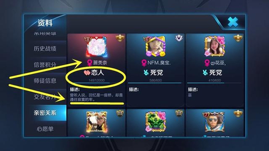 可是,当妹子查看了男友的资料的时候,却发现亲密度只有1000多。我们知道,2000以上的恋人关系才是最高的。但是,在1000多亲密度的时候,排位却出现这个标志,实在很好奇。刚开始的时候,小曼也是发觉有些不对劲,但是经过大神点拨之后,终于知道是怎么一回事了。