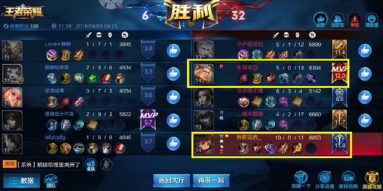 王者荣耀平民玩家跟土豪玩家真的是差距非常大!差距大的不仅仅是皮肤以及英雄上的差距,就连战绩也是有差距的。玩家钟无艳评分11.4跟上面的墨子评分是一模一样的,两个人都是11.4的评分,那么一局游戏只能是一个MVP。结果人家墨子是V6玩家,可是钟无艳是个平民玩家。所以MVP给墨子拿了,钟无艳玩家只能说我差MVP一个V8贵族,要不然MVP就是我的了。