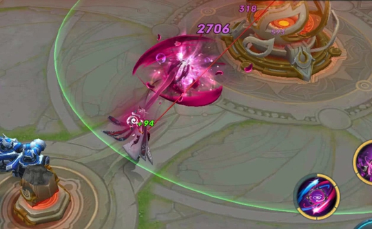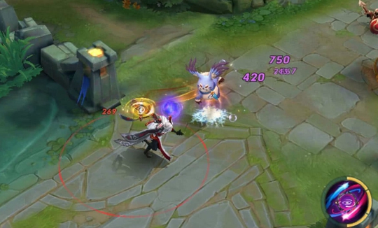 实战中,明世隐的连招主要还是依靠普攻,在远距离时利用1技能持续消耗敌人。在近身之后,1技能命中敌人后,配合2技能切换成防御状态,减少对手的防御,配合普攻打出更高的伤害。在团战中,每当控制到一名对手以后,再转头去控制另外一名敌人,搅乱整个团战的同时,控制更多敌人。