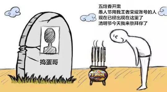 王者荣耀捣蛋哥,愚人节那天你用我的账号做的事情,清明节今天我来你的坟前祭拜你,这事就算一了百了了,五炷香开熏燃起,给你鞠个躬