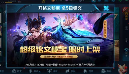 在活动期间购买红蓝对决,可以获得额外的铭文,可能是五级铭文可能是四级铭文,也有可能是200铭文碎片。