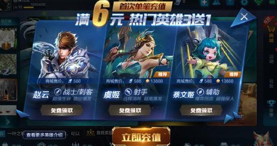 套路还是很深类似的套路还有就是6元首冲送英雄一样,原本就一个赵云就好了,片片还要加上虞姬和蔡文姬。