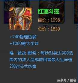 我们对比一下红莲,240的防+1000的生命值,被动伤害是可以通过血量加成无限提高的