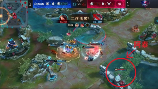 和路人局不一样,KPL作为王者荣耀最高水平的比赛,要想在里面实现1v5是十分困难的事情。不过在昨天XQ对阵BA黑凤梨的比赛里,XQ阿泰就成功秀出了一波1打5的逆天操作!