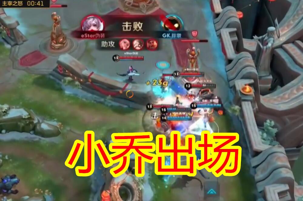 第2局,eStarPro伪装使用了小乔这个冷门英雄,但中期GK靠诸葛亮+程咬金打出了优势,小乔在发育未完成的情况下对程咬金没有任何办法,每次都被粘着打。GK趁机强推,最后一波也是靠程咬金和太乙真人强行吸收了大部分伤害,然后反打,和主宰先锋一起上了高地,点破水晶,双方1比1战平!