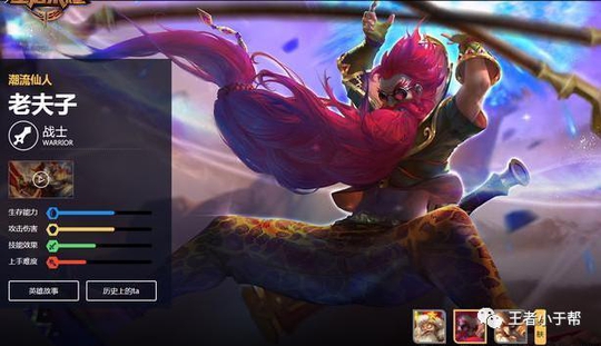 前期有大招就找机会去针对一下猴子,毕竟猴子前期是真的弱,没出做出两件核心装备的猴子弱的不要不要的,使用老夫子就要利用好这段时间,进行针对,大招留给猴子就可以了,让对面节奏爆炸。