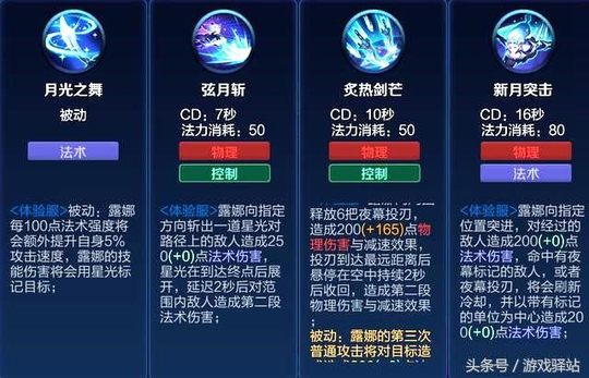 露娜属于全技能重做,其中被动效果改为提升攻速意味着露娜不再依赖攻速铭文搭配,另外2技能牵引敌人被改为减速效果,而加盾需要第三次普攻触发...总之重塑后的露娜依旧可以无限连,小编试玩后发现上手和无限连难度降低,具体技能如下所示: