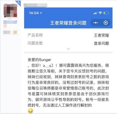 这名玩家遇到官方莫名奇怪的封号,心里也是很郁闷的。毕竟玩家最多只是在三月初时看到有人卖片,玩家当时也只是说了句这种行为不对,随后就被禁言了一个月时间。但不管怎么说还不至于严重到封号这种地步吧?后来玩家去找官方客服反馈,但是官方客服几乎都是机器式回复,客服回复称玩家本次封号的原因是由于团伙游戏行为,破坏游戏公平性导致的封号。而且账号被封人工也是无法解封的,看到这里想必玩家欲哭无泪。
