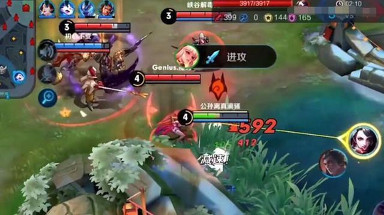将上路的兵线清理完之后,对面的众人向着上路包围,打算将小浪浪的公孙离击杀.此时,小浪浪的其他队友也赶来支援,双方爆发起了团战.即使小浪浪的公孙离位于战场的中心,但是由于有多段的位移,小浪浪丝毫不虚.