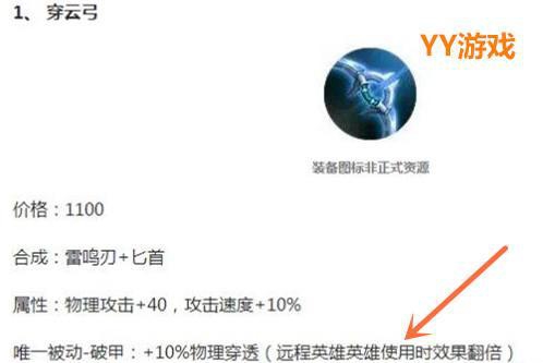 →“穿云弓”合成破晓的必须装备,毫无疑问将是射手的必备。