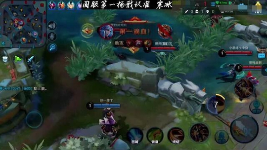 在选到杨戬这个自己的本命英雄之后,虎牙寒冰打算帮助自己的打野守护住己方的蓝buff,但是却遭到敌方的四人击杀,自己送出一血.