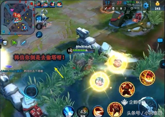 耀神打着团还得发话:“韩信你倒是去偷塔呀!求你了!”