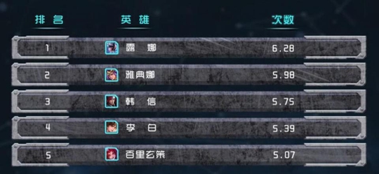 我们来看看蓝buff的获得率,第一名是露娜。这个法师可以说是最依赖蓝buff的,无论是减cd或者是回蓝对她都很重要,如果有蓝buff的话,那么月下无限连的难度会降低很多,所以说抢了露娜的蓝buff无疑就是要了她的命,这个英雄最近在体验服重做,还想玩的小伙伴只能趁这几天了。