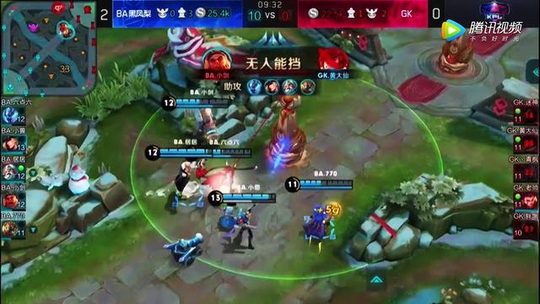 第一局:开局双方平稳发育。四分钟,迷神的程咬金送出一血。比赛在七分钟的时候迎来一波高潮,先是苏烈大招大到BA两个人,GK瞬间就秒了马可波罗,但是GK也付出了惨重的代价,苏烈和百里守约都被BA击杀。两分钟后的一波团战,BA打了一波0换4,打爆水晶,赢下第一局。