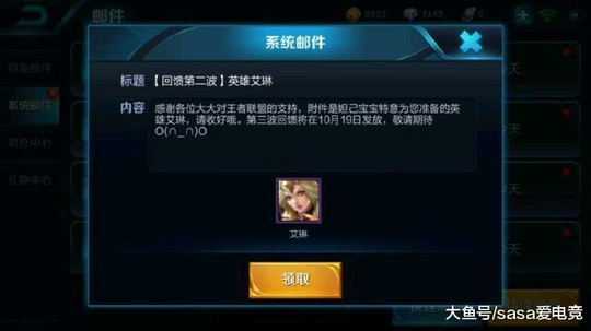 这还不是游戏的关键,因为玩家也还在玩王者荣耀,结果他登陆游戏的时候登错账号了。但是当他登上游戏的时候整个人都笑了起来。我们都知道,长时间不登陆游戏,邮件当中会积攒大量的福利,像钻石、宝箱等等。这个玩家收到了一封叫做“回馈第二波”的邮件,打开之后上面写到:感谢各位对王者联盟的支持,并且给了自己艾琳这个英雄。这也就意味着,这个玩家在内测时期就注册了王者荣耀,当时王者荣耀还叫做王者联盟。