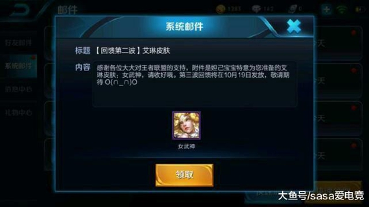 随后他又收到了一封相同的信件,这一次的奖励是艾琳英雄女武神的皮肤。要知道,现在艾琳和女武神是王者荣耀当中最稀有的两个道具了,没有任何途径可以获得。这两个道具出价5百绝对会有人购买的,也就是说这个玩家免费得到了这个账号。