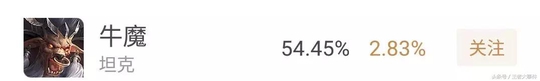 第二个英雄是 牛魔 ,也是一个辅助英雄, 出场率仅为2.83%。