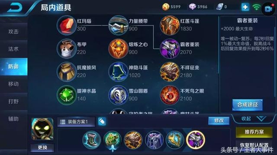 也是辅助型纯肉的出装打法,这样就可以在团战中发挥他最大的作用,不至于技能还没释放就被打回水晶。
