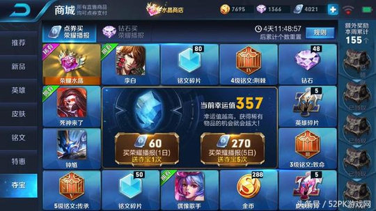 要说王者荣耀里有什么东西最费钱,大家肯定都同意一个说法那就是夺宝,不过好在王者荣耀的夺宝有保底机制,抽满361次必定会出水晶。