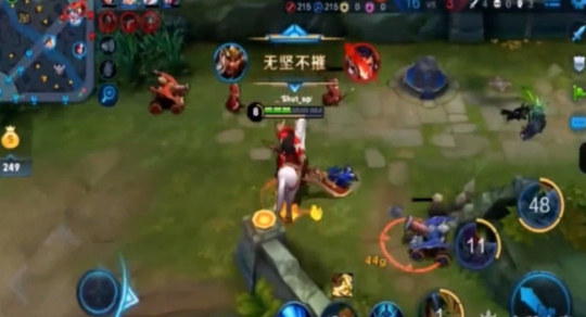 我们可以看到当游戏进行到四分钟的时候,有大招的关羽在敌方野区蹲前来打红的孙尚香,本身就半血的关羽,但是遇到前期伤害不高的孙尚香也是一个大接两个一技能斩死在野区,面对高移速的关羽,孙尚香完全无力回天。