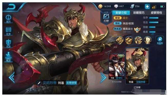 刘备,打野英雄,发育很快,打钻石星耀经常看到队友或对面把他上扳掉。