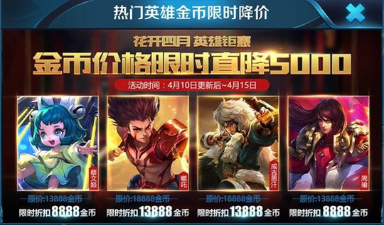 王者荣耀今天更新的内容,最大的福利就是4个英雄降价5000金币,根据以往经验,这种活动一般情况下都是在有新英雄登场的时候才会有,所以,我们有理由相信新英雄——狂铁将会上线正式服了!