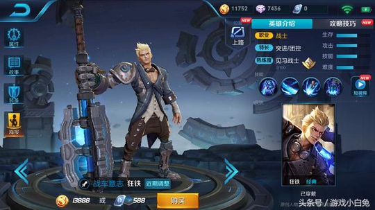 狂铁是一位战士英雄,输出不比刺客低,1技能回血很恐怖,而且现在的大招改成了吸收伤害,是一个能打又耐抗的英雄。可能是因为之前几个新英雄不像以前的一些新英雄强势,所以不少玩家都没买新英雄,所以狂铁又将回归以前新英雄上线一段时间必削弱的局面。