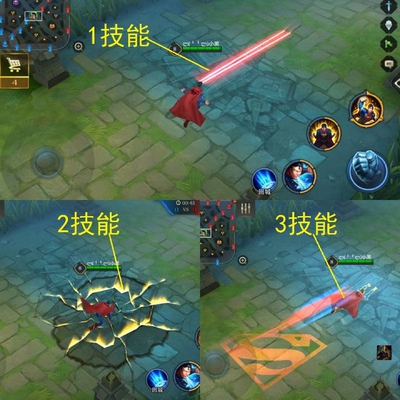 第二位就是我们的超人,小黑龙了解完超人的技能,脑海里立马浮现出了王者荣耀正服的关羽,超人的技能跟关羽完全是一模一样的,这就是关羽的技能。同样是需要蓄力才能打出伤害的技能,一技能也是指定方向扑过去眼睛放出两条光电,2技能是猛踩底下,三技能是向前方直推过去。三个技能完全跟关羽的一模一样。