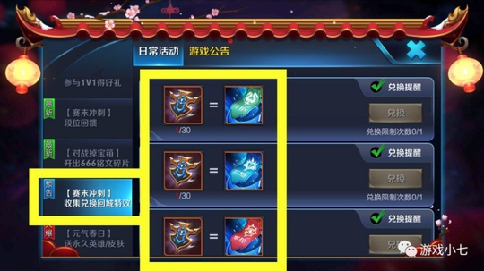 一、收集“赛末冲刺徽章”兑换“团战精神回城特效”,回城特效只有14天有效时间,五种精神回城特效,每个都要30个“赛末冲刺徽章”,对于小七这样的2年老玩家来说,没任何卵用,可以无视这个任务,不如用1个“赛末冲刺徽章”兑换1个“赛末冲刺小礼包”划算点,起码给5个钻石或者5个铭文碎片,回城特效14天以后就没了。