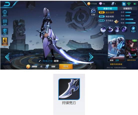 露娜的武器打野的朋友应该很熟悉,是不是特别的像“狩猎宽刃”!几乎就是一个模子里刻出来的一样,策划美工是不是为了偷懒才把露娜的武器做的如此“简陋”简陋就算了还很不值钱,也难怪这次官方在更新之后连露娜人物模型都重做了。