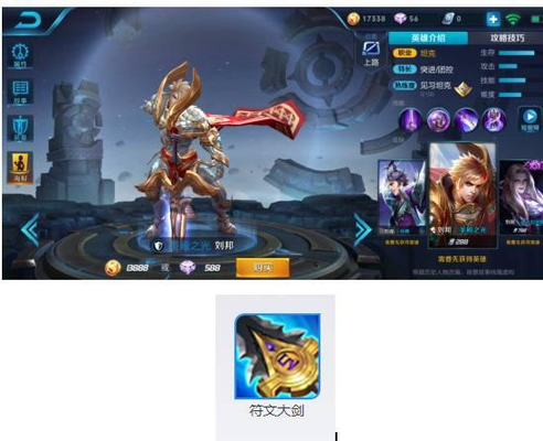 刘邦的武器似乎有些像“符文大剑”虽然符文大剑的两翼没有刘邦武器那么大气,但是整体形象上还是比较相似的,并且符文大剑在装备库里并不便宜,价值1490金币,跟我们金闪闪的刘邦十分相配啊。
